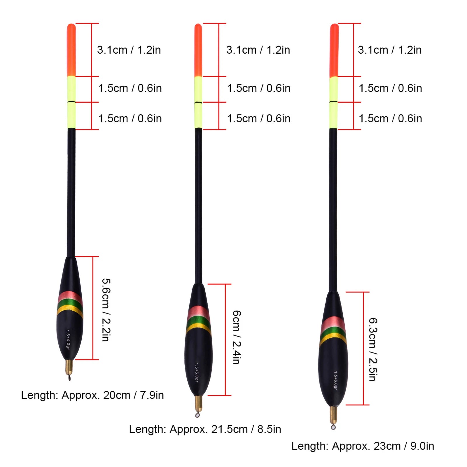 3Pcs with different floatage in a pack to meet your use needs, and suitable for different types of fishing.