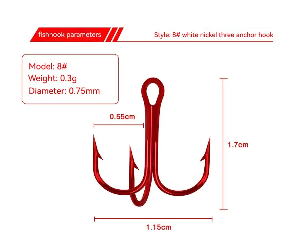 50Pcs Fishing Treble Hooks Kit High Carbon Steel Hooks Strong Sharp Round Bend for Lures Baits Saltwater Freshwater Fishing