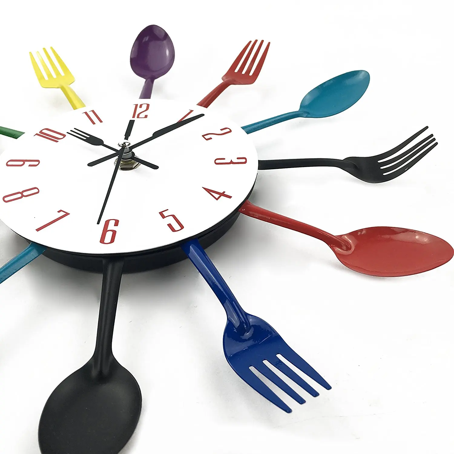 ABYN-Kitchen Wall Clock, 3D Removable Modern Creative Cutlery Kitchen Spoon Fork Wall Clock Mirror Wall Decal Wall Sticker Room
