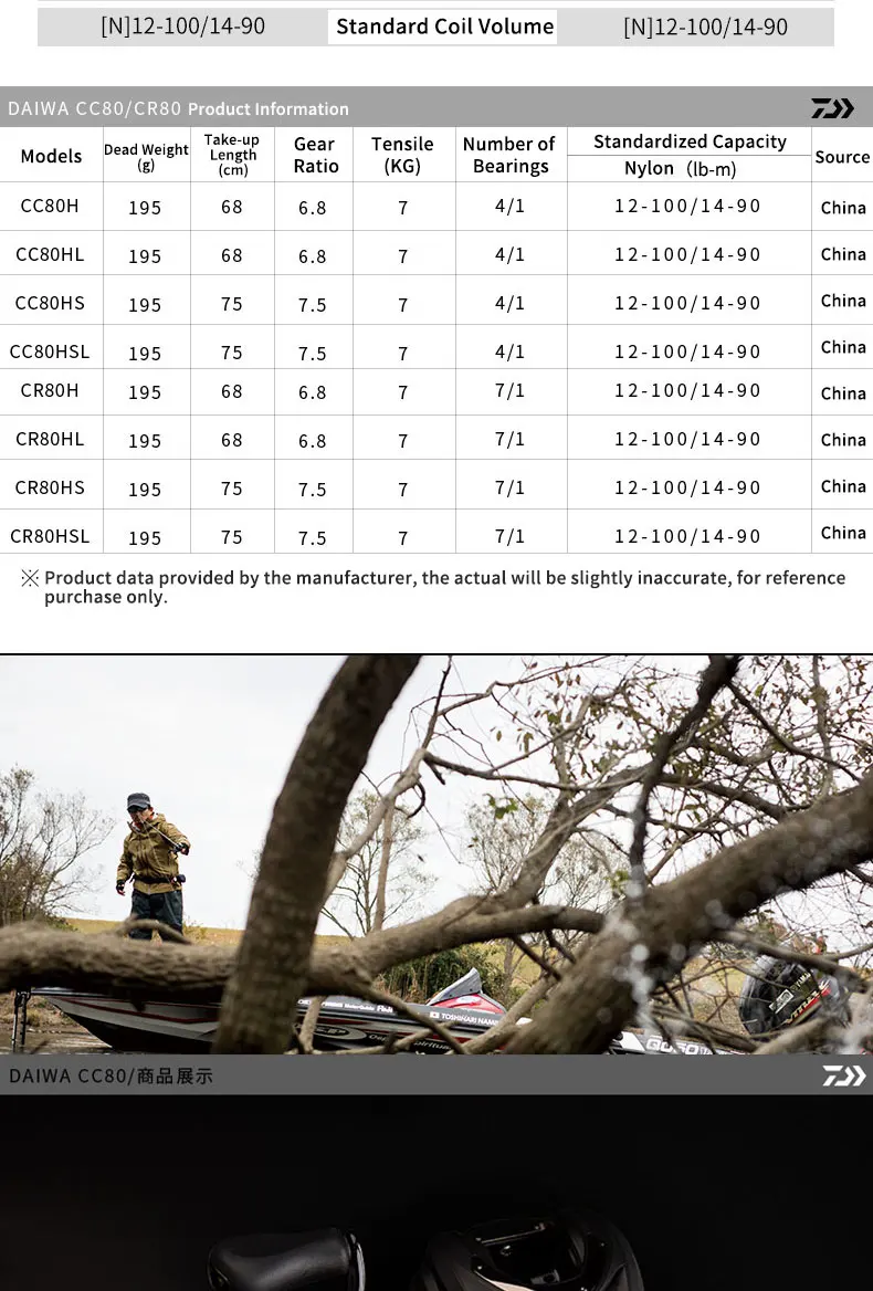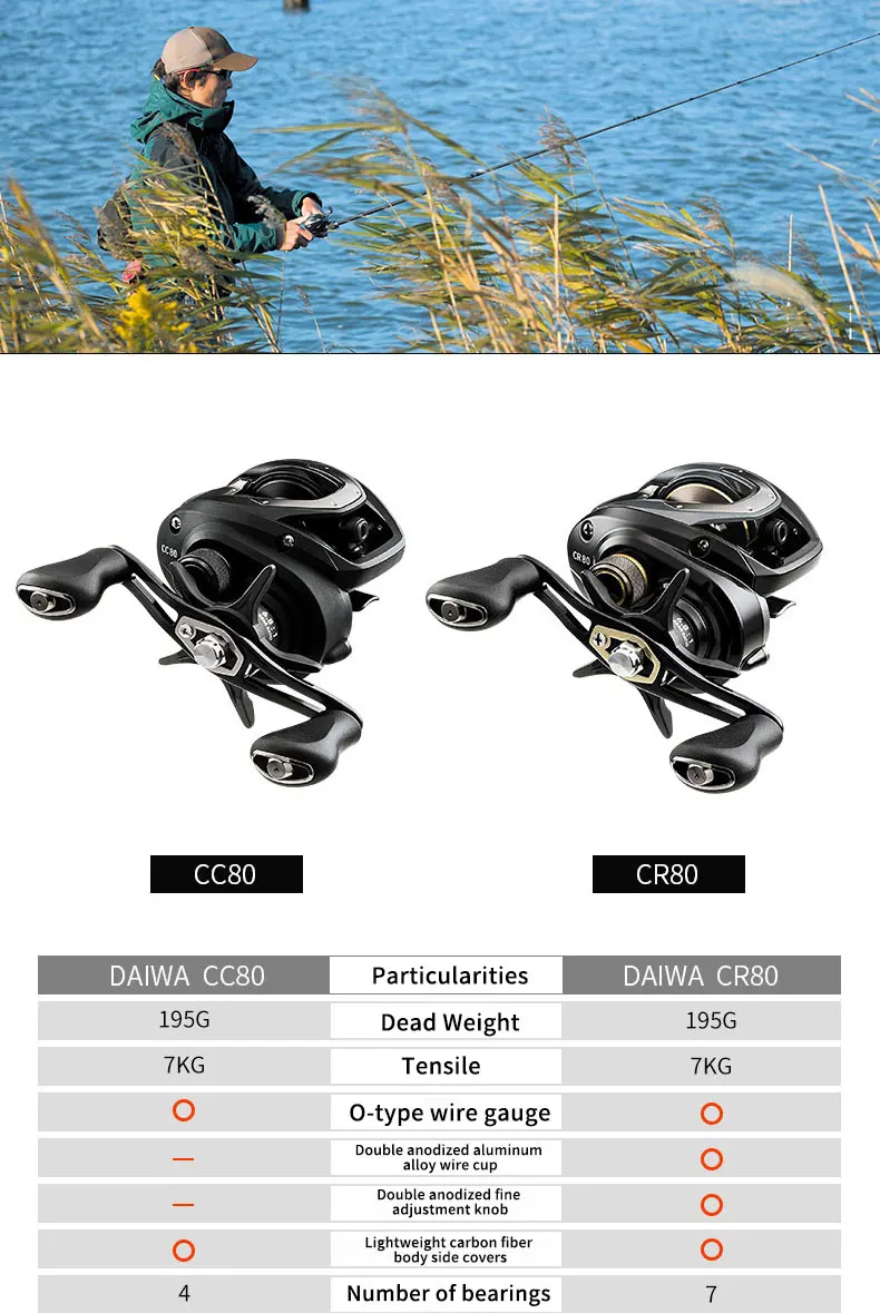 DAIWA CR80 Fishing Reels 6.8/7.5 Gear Ratio Max Drag 7kg Baitcasting Fishing Reel Pesca Max Drag 7kg Low Profile Fishing Reels