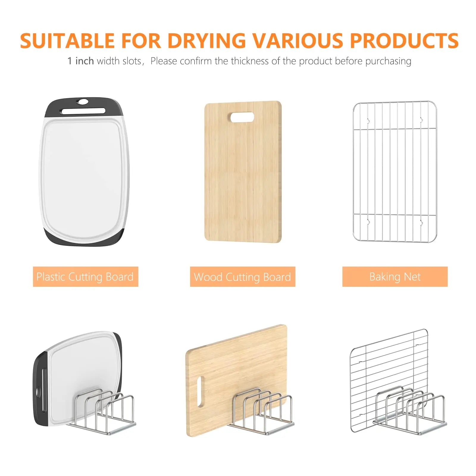 · SPACE SAVER: This cutting board organizer can be put either on your kitchen countertop for daily use or in cabinet to organize cutting boards and bakeware, keep everything organized and tidy, saving valuable kitchen space.