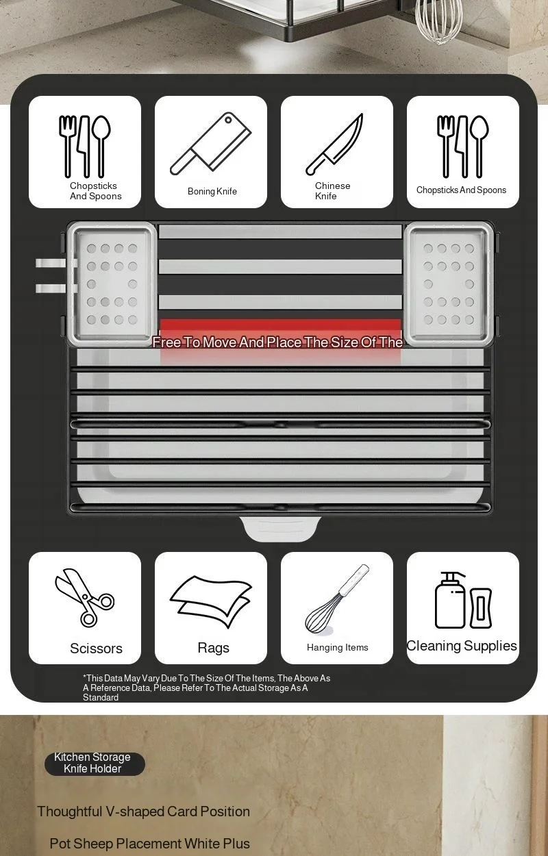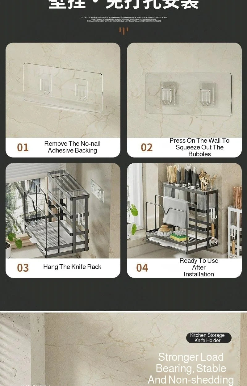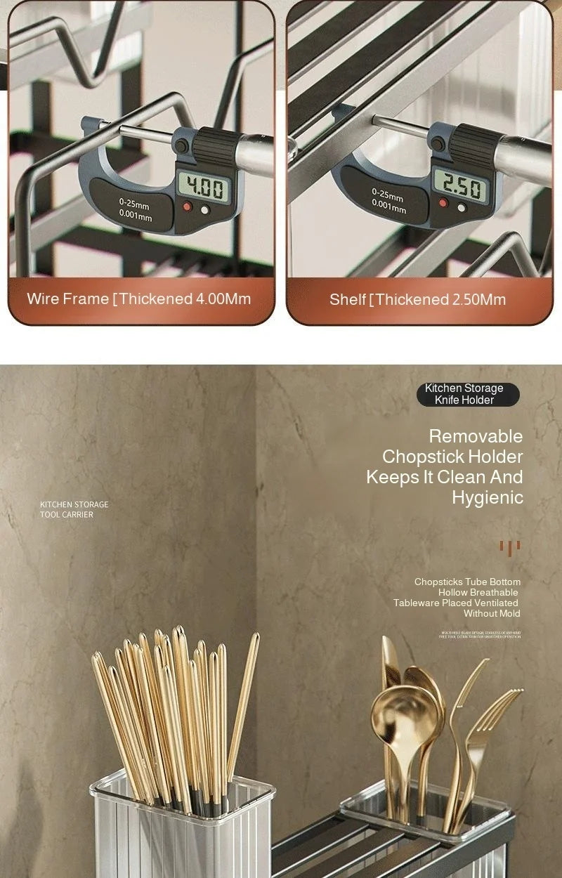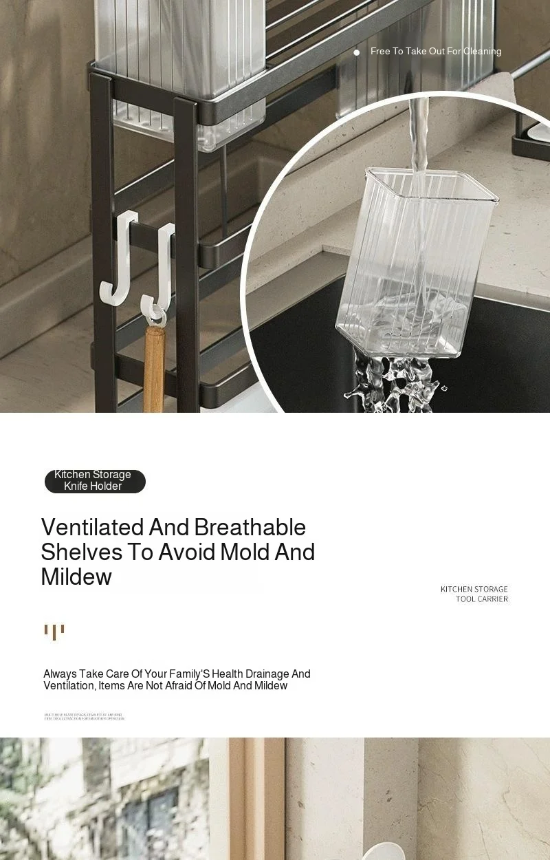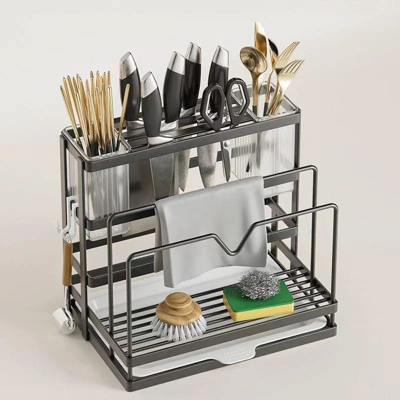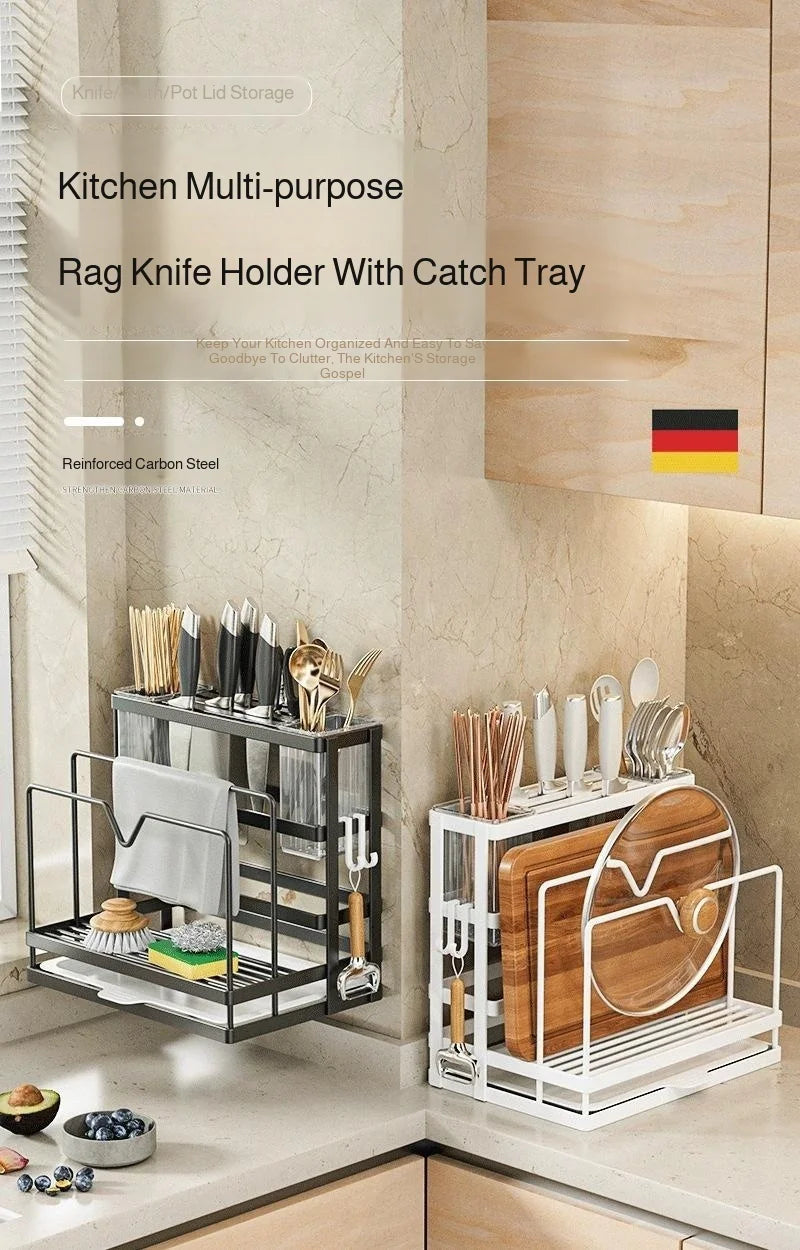 Kitchen Countertop Organizer with Drainage Tray -Integrated Rack for Cutting Boards, Knives, Rags, Chopsticks, Pot Lids, Durable