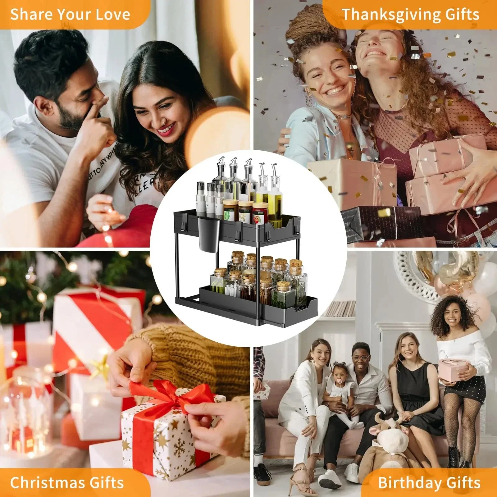 Kitchen under Sink Organizer And Storage Rack with Double Sliding Cabinet Drawers Multi-Purpose Storage Shelf Holder for Home