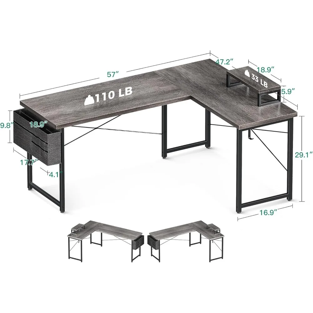 "L-Shaped Computer Desk with Storage, 57.5 Inch Reversible Gaming Desk, Corner Home Office Desk with Monitor Stand, Space-Saving