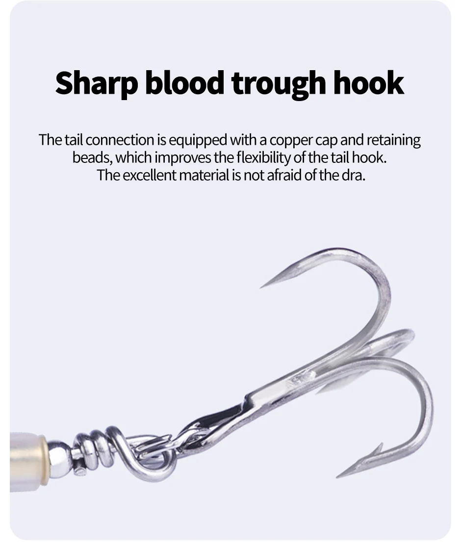 • Rotating Tail Design :The lure's rotating tail design mimics the movement of real bait, enticing fish to bite.